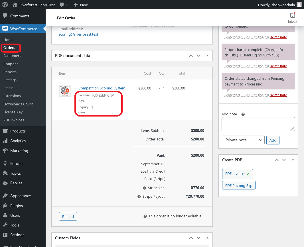 Generate a license key to in WooCommerce product for web services.