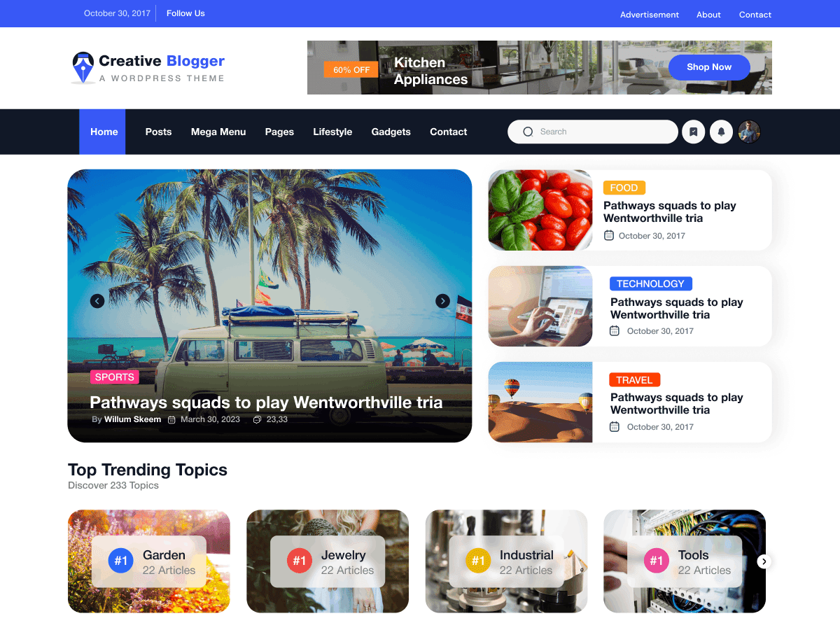 Creative Blogger theme is a versatile, modern, and sleek blogging solution crafted for bloggers across various niches such as personal blogging, lifestyle insights, travel escapades, culinary adventures, fashion tips, tech reviews, health guides, DIY projects, photography blogs, food blogs, and creative writing, incorporating relevant search terms like digital content creation, influencer blog template, personal branding blog, online presence portfolio, professional blogging layout, content marketing blog, entrepreneur blog design, and social media blog platform. This theme enhances your online presence with user-friendly features and a clean, professional design layout that captivates readers from the first view, ensuring your blog looks credible and engaging. It includes customizable templates to showcase articles, captivating photography, videos, tutorials, and thought-provoking posts effectively. Built-in tools such as SEO optimization, social media integration, newsletter subscriptions, content calendar, and editorial management streamline content creation and boost audience engagement. It also supports monetization efforts through affiliate marketing links, sponsored content, and payment gateway integration. The Creative Blogger theme is compatible with essential plugins like Jetpack for performance, security, social sharing, and analytics, as well as Mailchimp for email marketing campaigns and Yoast SEO for improved search visibility. Ideal for aspiring bloggers, digital marketers, and seasoned influencers alike, this theme empowers you to create, share, and grow your audience effortlessly, offering the flexibility and tools needed to build a standout blog in a competitive digital landscape.