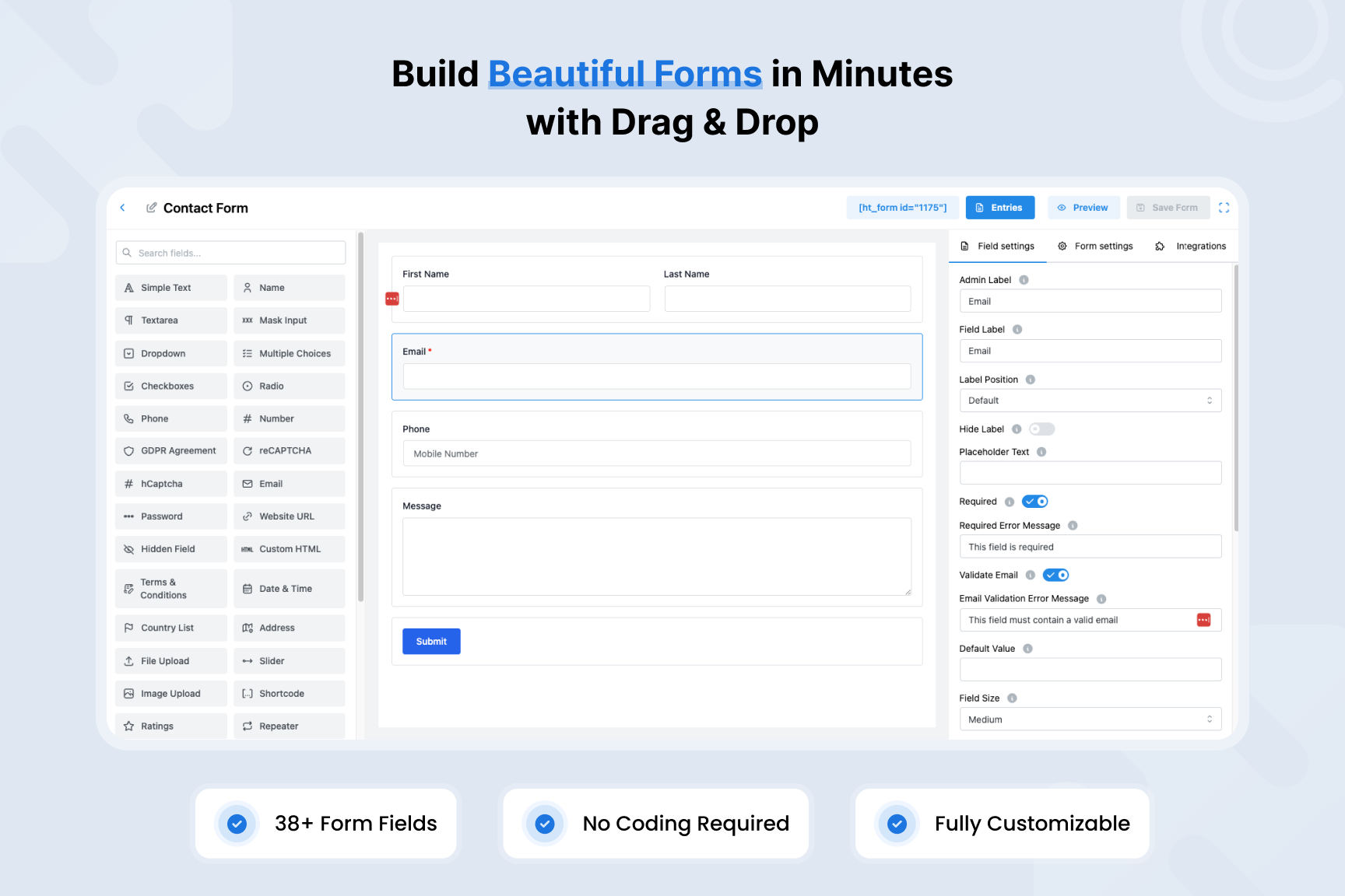 Drag & Drop Form Builder – Create beautiful forms with 38+ fields
