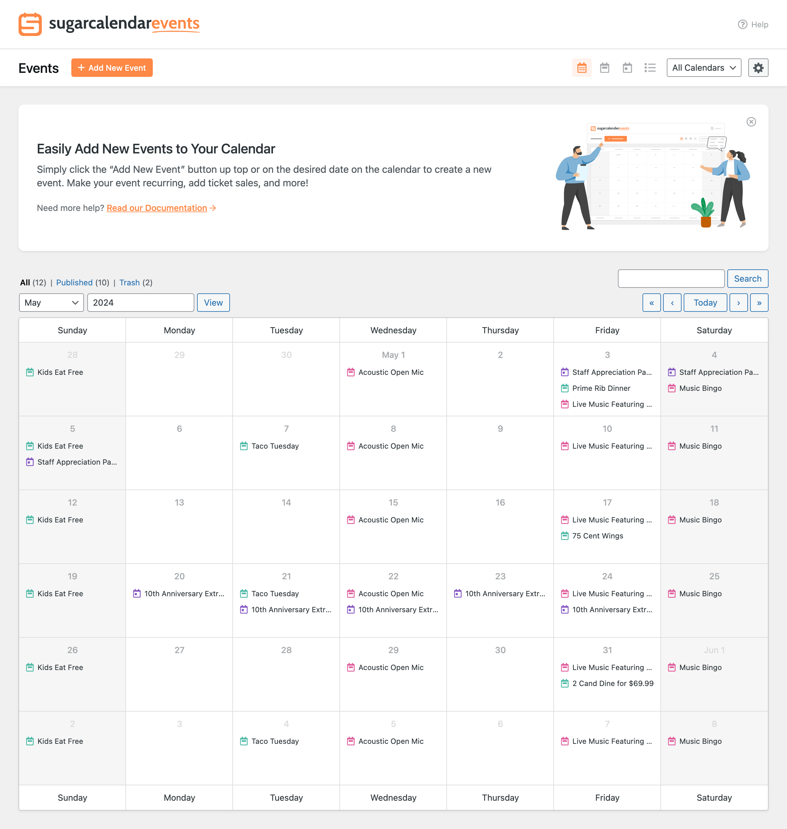 We believe event management should be simple! Sugar Calendar is a powerful yet lightweight events management plugin for WordPress that makes it easy to create event calendars, manage event registrations, and sell tickets, without the bloat.