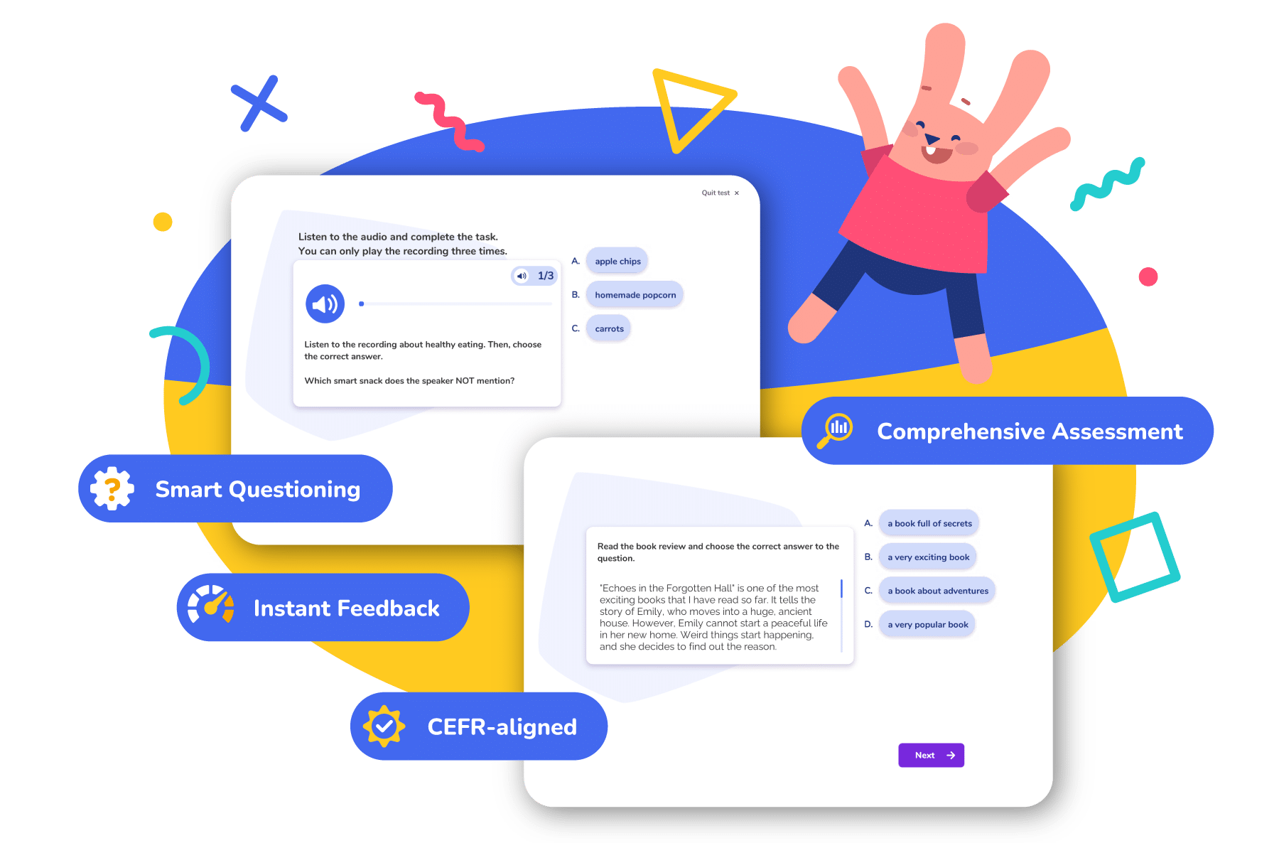 By aligning with the CEFR framework, the placement test ensures accurate leveling, making it easier for teachers to create personalized learning plans. Whether you’re teaching a beginner or an advanced learner, our adaptive test helps you save time and guide your students on their perfect language learning journey.
