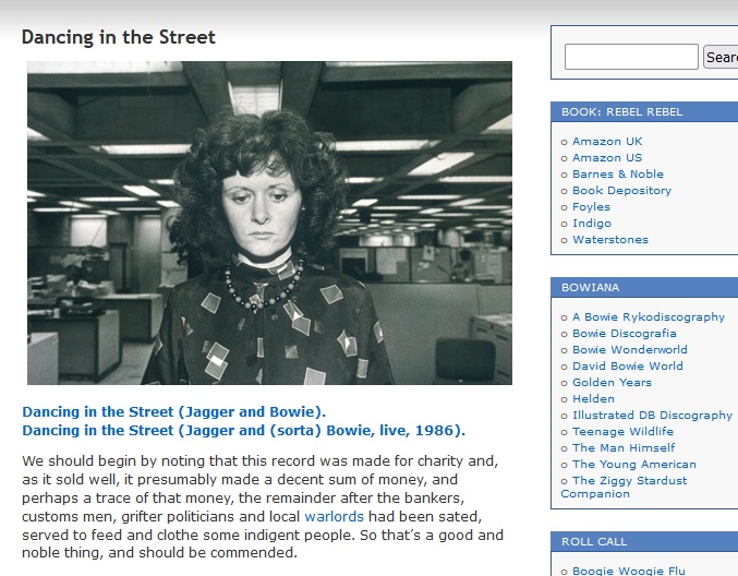 There were no Bowie music videos of real significance in the years after ‘hours…’. He said at the time that making them was a waste of money, as they wouldn’t get played. Then in 2013, with YouTube and his website as his personal MTV, he returned to video. As he no longer toured or gave interviews, his videos became his music’s primary supplement.