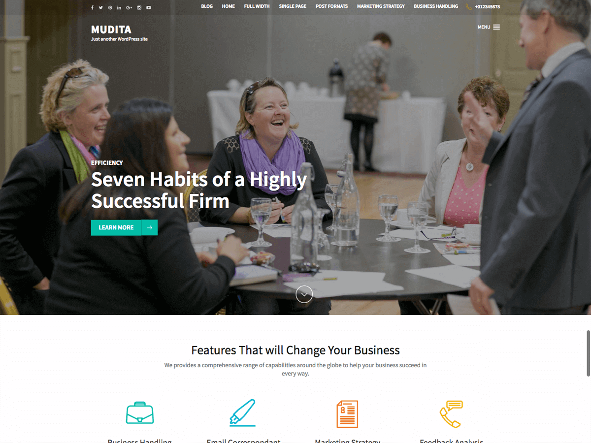 Mudita is a beautifully designed, clean and modern multi-purpose WordPress theme. The theme is very versatile and can be used by any business websites, digital agency, consultancy, corporate business, freelancers, portfolio and product showcase, bloggers and everyone one who appreciates beautiful design. The theme is SEO friendly, which make it easy for your site to rank Google and other search engines. Mudita is loaded with several features to make user-friendly, interactive and visually stunning website. Such features include two menus, full width banner, service section, team section, testimonial section, off canvas menu and social media. It has four footer area and a right sidebar and includes three custom widgets for recent posts, popular posts, and the featured post. The theme is rigorously tested and optimized for speed and faster page load time and has a secure and clean code. The theme is also translation ready. Designed with visitor engagement in mind, Mudita allows anyone to create a stunning, fast and mobile friendly website compatible with all browsers and devices. Check the demo at https://rarathemes.com/previews/?theme=mudita, documentation at https://docs.rarathemes.com/docs/mudita/ and get support at https://rarathemes.com/support-forum/.
