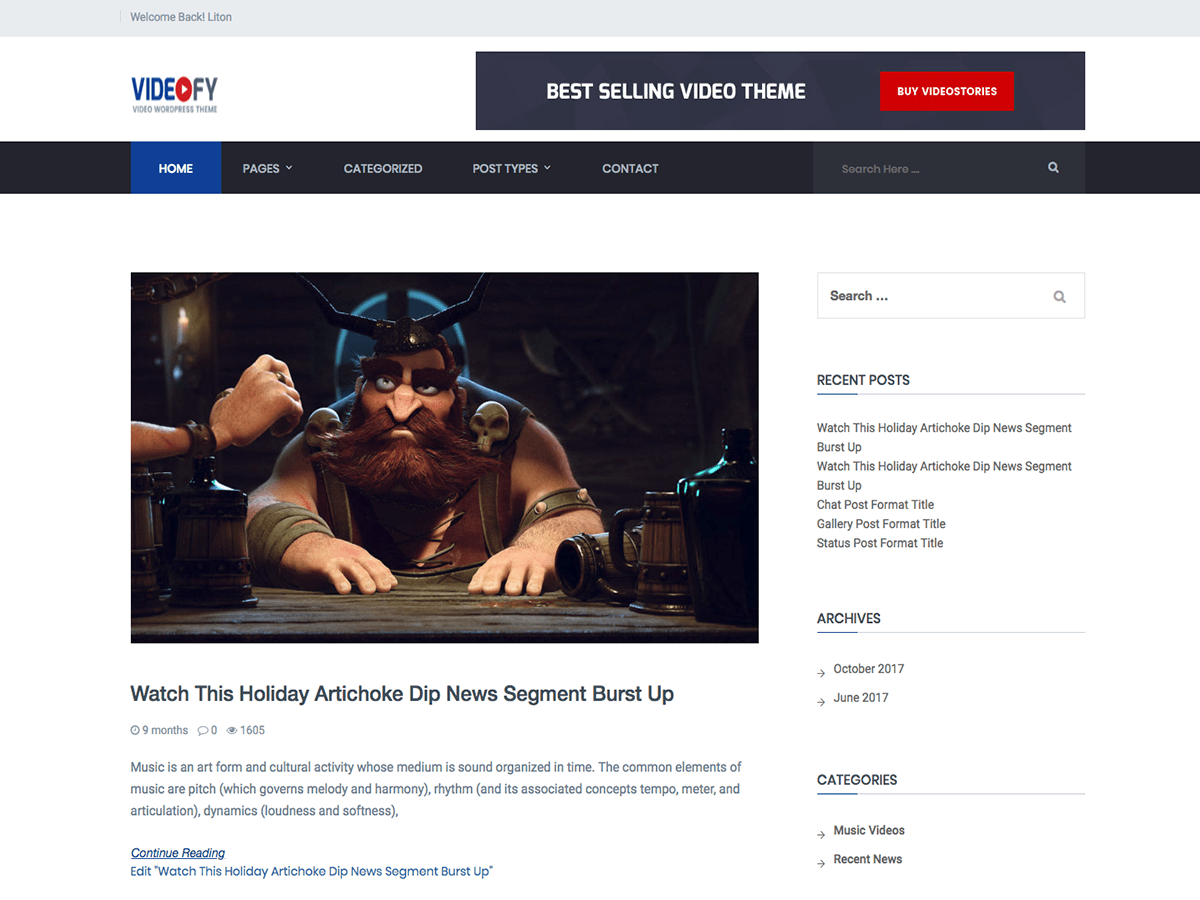 Videofy is child Theme of VideoStories. Perfect for Vlogging and Blog type websites.