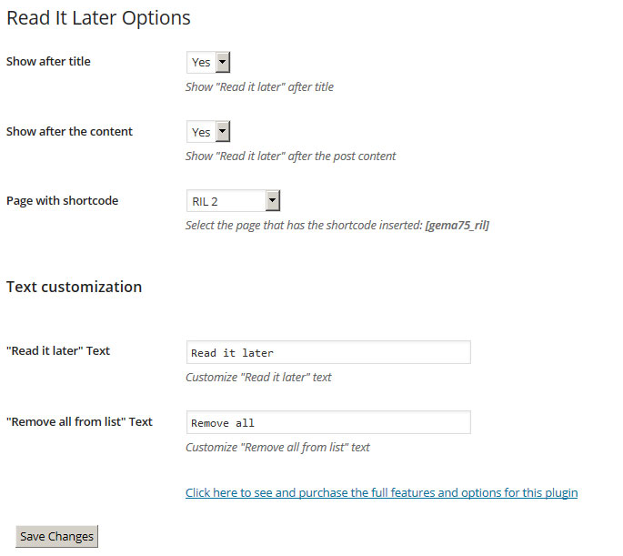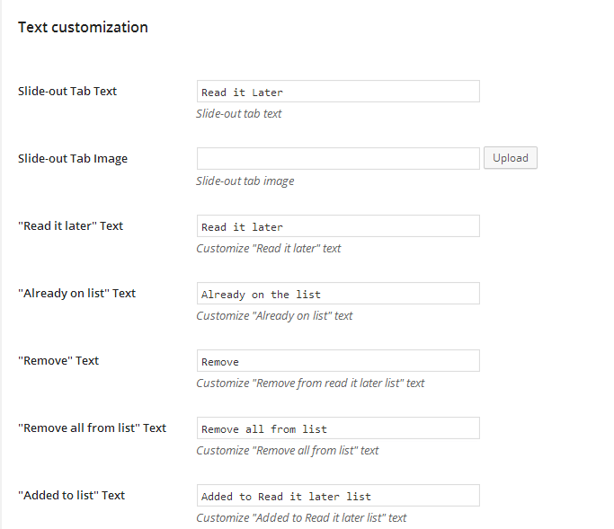 - Customize the text that will add the post to Read It Later list