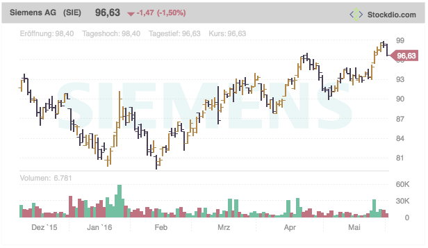 Example of live stock chart using Lizard motif and Whitespace palette in German, displaying prices as OHLC.