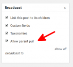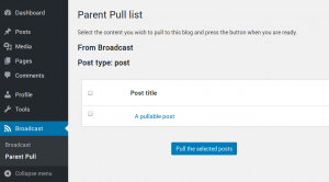 After posts have been marked, they are now pullable by visiting a target blog’s Admin > Broadcast > Parent Pull menu.