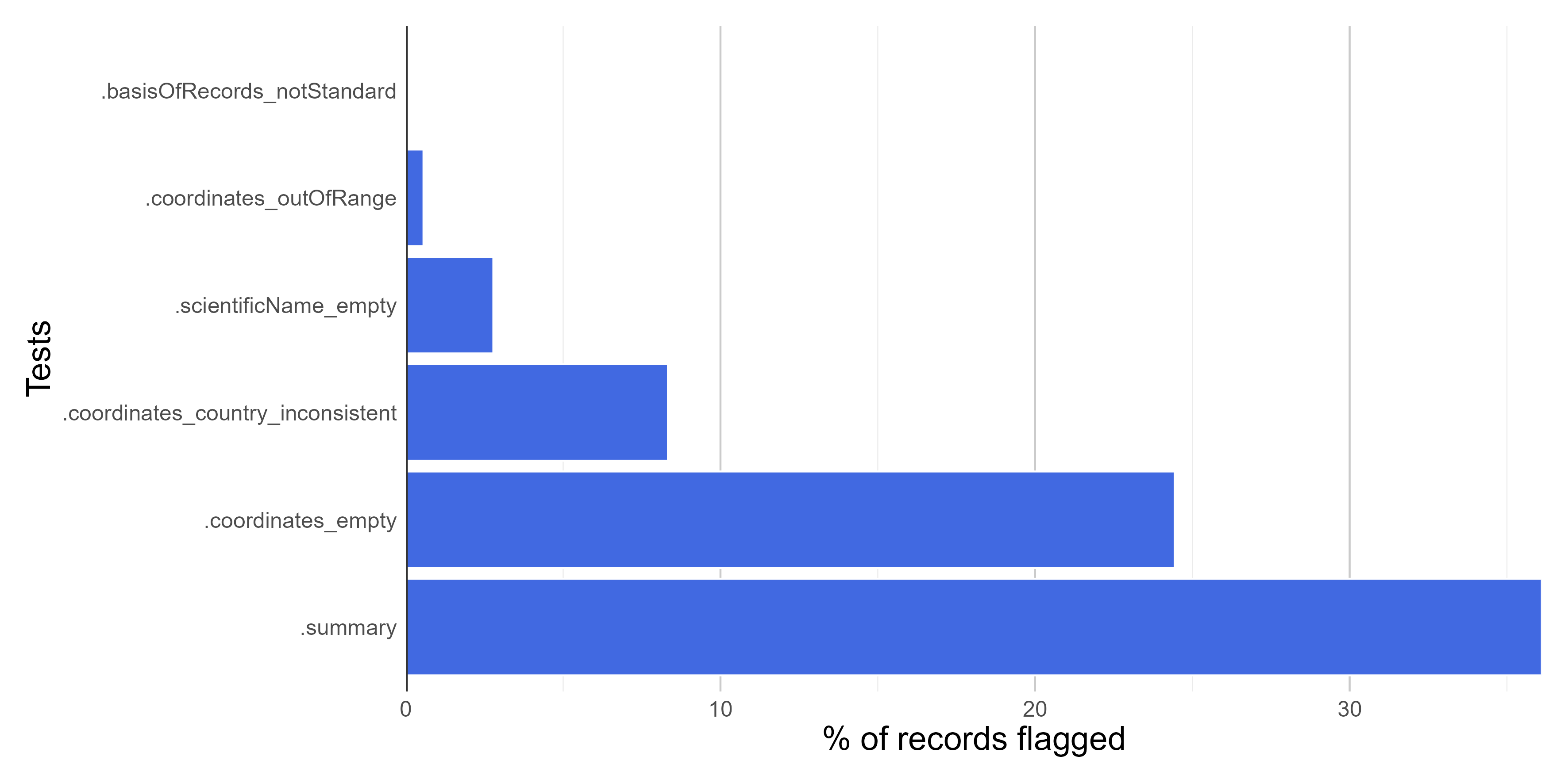 #> .scientificName_empty, .coordinates_empty, .coordinates_outOfRange, .basisOfRecords_notStandard, .coordinates_country_inconsistent, .summary