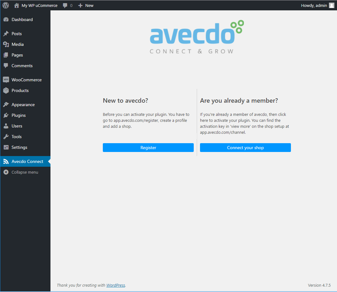 Just paste in your activation key, press the submit button, and your shop will be connected to avecdo.