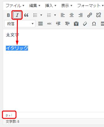 同じく、[I]ボタンをクリックしたときには、emタグではなく、iタグを出力するようになります。