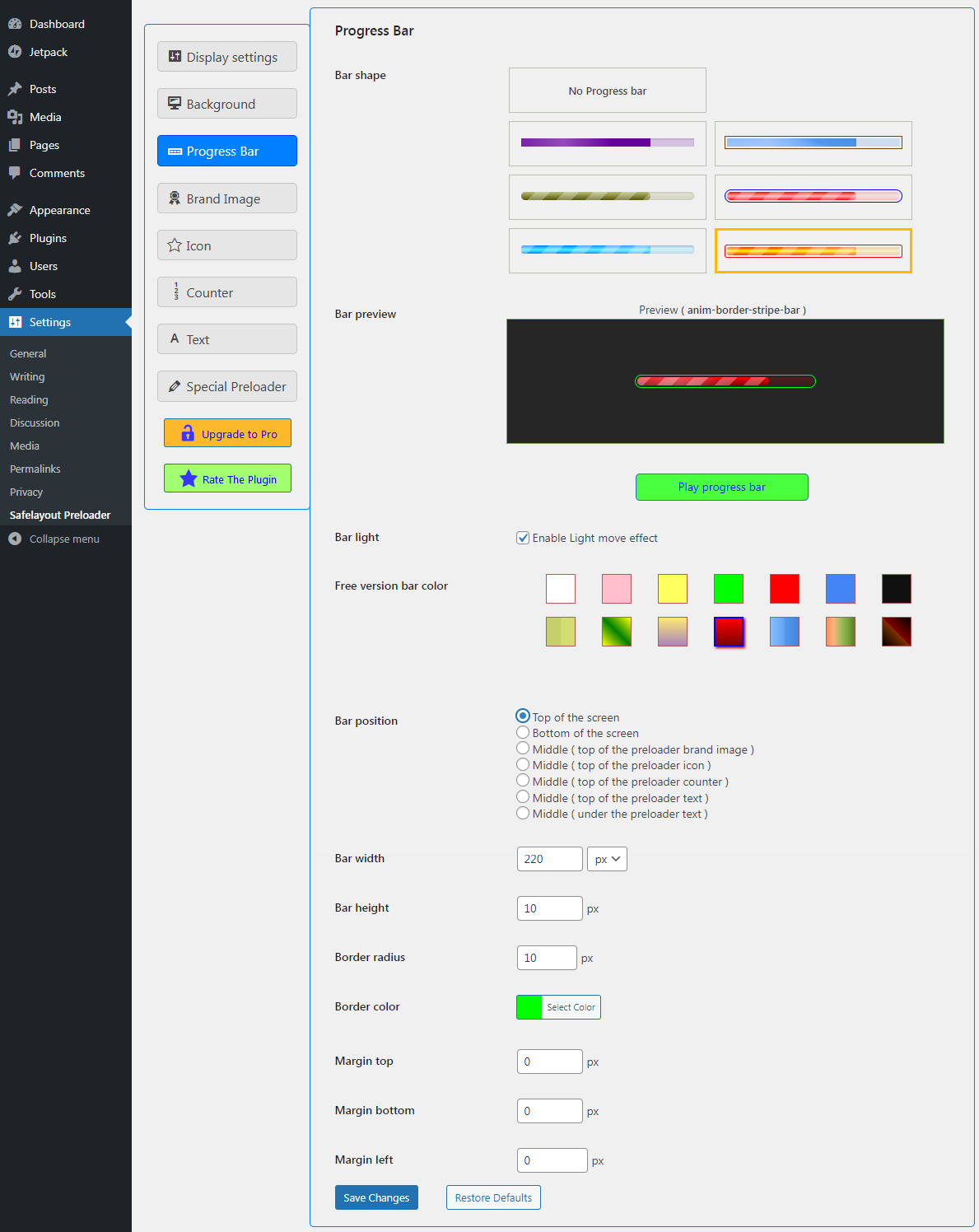 - Use the Settings -> Safelayout Preloader to configure the plugin.