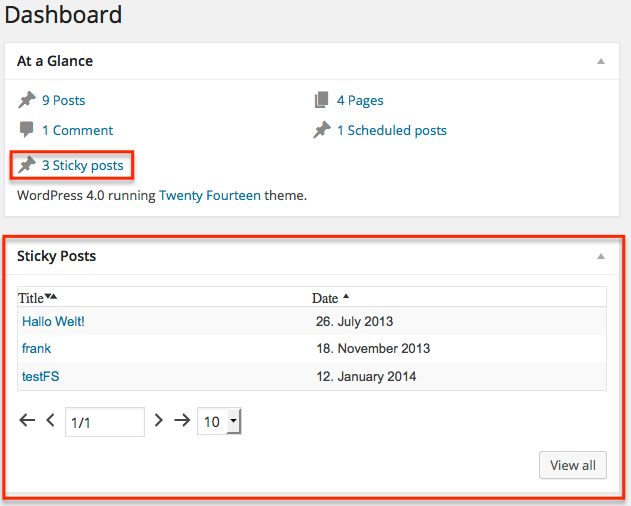 Dieses Plugin stellt ein Widget für das Dashbord bereit, das die Beiträge anzeigt, die die option “Oben behalten” gesetzt haben.