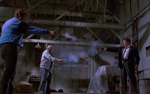 3人は同時に発砲し、ジョーとエディは死亡(ホワイトが2発発砲)