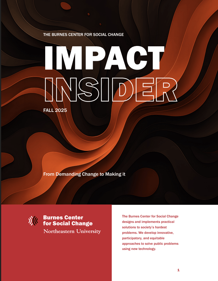 The challenges societies face today cannot be solved with yesterday’s toolkit. The Burnes Center for Social Change at Northeastern University advances real-world impact by teaching individuals and institutions the skills needed to design and implement innovative and equitable solutions to our hardest problems. In the process, we are building a new field of social impact that leverages data, technology, community wisdom, and the power of institutions to enable systems-level change in practice.