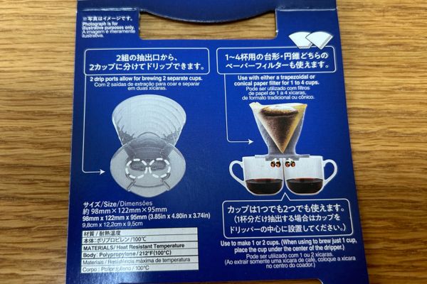 ダイソーの「ダブルコーヒードリッパー」はパッケージのとおりで、2カップを同時にドリップできる時短アイテム。