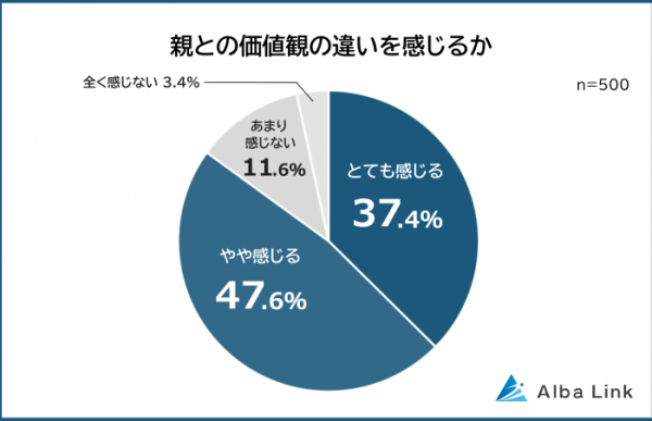 調査結果によると、親との価値観の違いを感じている人は実に85.0%に上ることがわかりました。