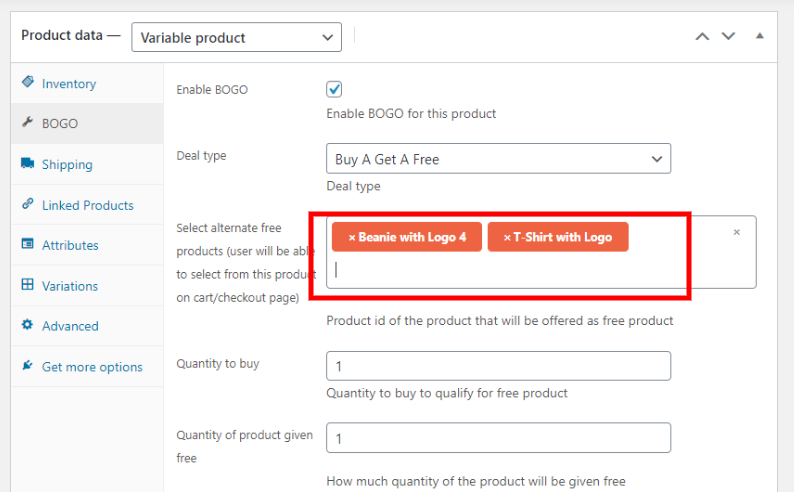 Full control over variable product BOGO offer