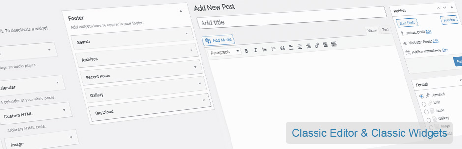 Classic Editor and Classic Widgets plugin enables old-style WordPress Classic Editor for “Edit Post” with TinyMCE (WYSIWYG), Meta Boxes (Custom Fields), and others. Once activated, this plugin hides all functionality available in the new Gutenberg block editor.