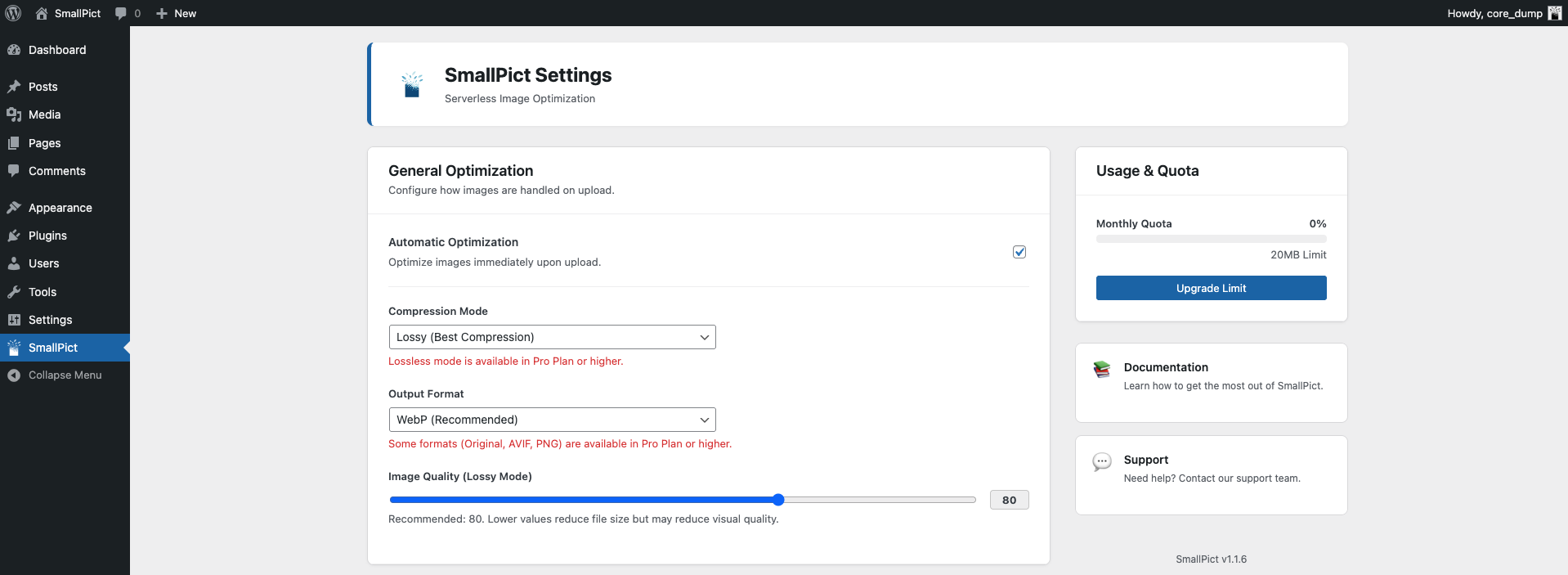SmallPict is the simplest way to speed up your WordPress site. We automatically compress and convert your images to modern formats (WebP & AVIF), making your pages load instantly without sacrificing visual quality.