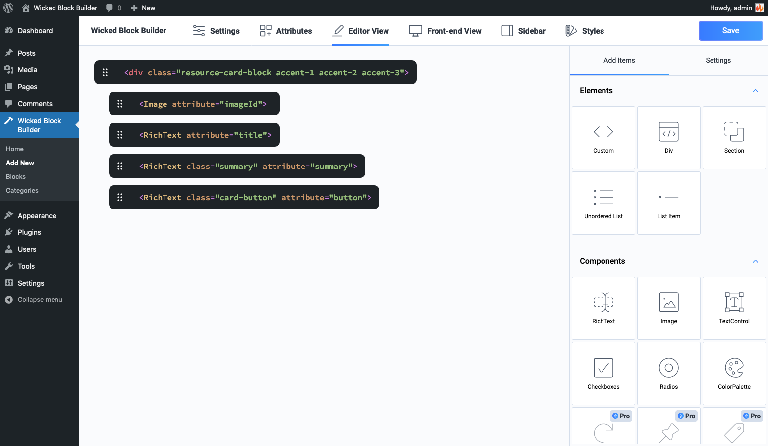 Build blocks using your own semantic markup. Simply drag-and-drop HTML elements and components to build your block in minutes.