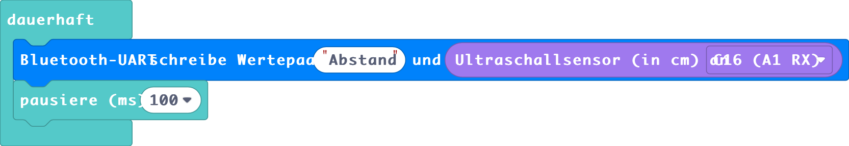 Eine optimale Verbindung von iPad und Calliope mini ist gegeben, wenn die Bluetooth Einstellungen des Programms auf dem Calliope mini übereinstimmen mit denen des zu übertragenden Programms. Für eine stabile Verbindung empfehlen wir daher, den Calliope mini einmalig vor dem ersten Übertragen eines Programms mit dem iPad mit dem jeweils passenden Startprogramm zu bespielen.