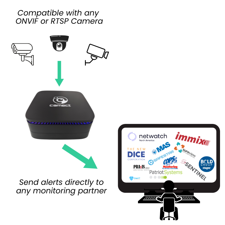 Connect to integration partners easily with the Camect Smart Camera Hub.