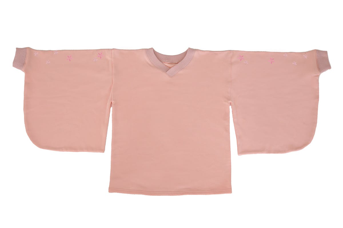 和風をさりげなく楽しめるよう、スウェット生地ながら振袖の仕様を取り入れています。