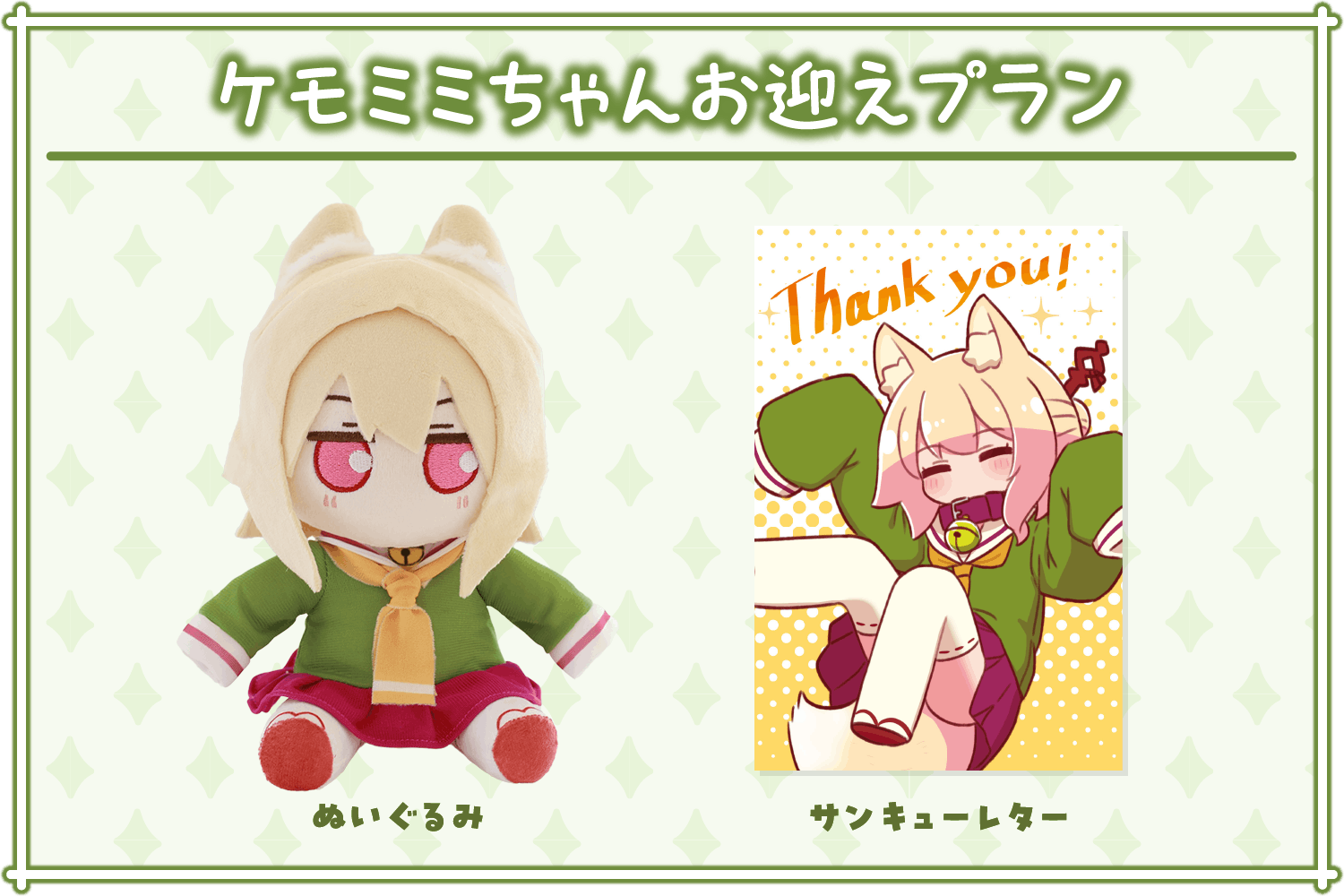 追加リターンのケモミミちゃんクッションと他のプランを併せて支援された方には、