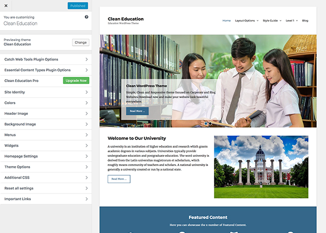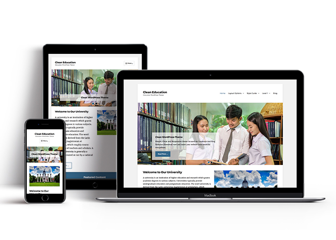 Clean Education, the free Education WordPress theme, portrays your education website as simple, clean, and user-friendly. In the first visit, it makes sure that your visitors are provided easy access to any area they like. The layout is responsive, and your website looks good on any device. The Education WordPress theme has powerful theme customization options. With dedicated separate sections for courses, professors, recent news, events, and testimonials, you can display your best features to your visitors. The comprehensive design makes sure your website gains healthy exposure. The features in the Clean Education Theme enable you to display your most impressive content at the forefront of the website. Because first impressions always matter. Clean Education Theme gives you the perfect online niche that is dynamic, multifunctional, and upfront. This theme is translation-ready. For more details, check out Theme Instructions.