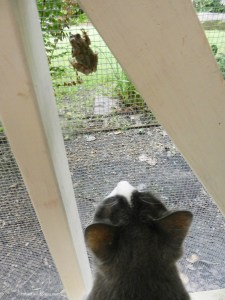 It’s been raining a lot lately, so look who turned up on the Catio.