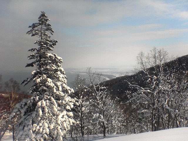 2007-01-21 晴れ晴れ 春香山906m 雪の山 春香山に行ってきました。山スキーはいて。初のオーンズコース。 アップダウンの多いコースだけど、よい雪とよい天気。 下の写真はピークの様子。こっちには下らないのが残念。