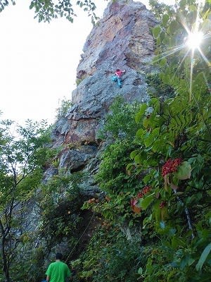 2020-09-06 オレンジ! 岩 みなさんが「オレンジ」をやると言う。 大好きなルートで、いつもまだ登れるか気になるのである。 2便目で無事通過。 何度登れてもうれしい。 気持ちに余裕ができたので、取り付き周辺の伐採作業と上から撮影にいそしむ。 どんどん調子を上げる、Wさん。 こわいと言っていたS-さんも果敢に攻める。 サイドからシルエットをねらう。 着々とRPを増やすEさんも終了点間近に迫る。 「オレンジ」が、オレンジ色になりかける頃まで「オレンジ」三昧の1日。