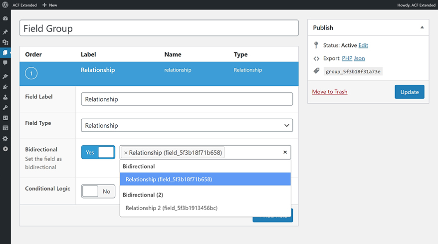 • Field Group: Global Conditional Logic – Added <, <=, >, >= Field Group Locations Operators