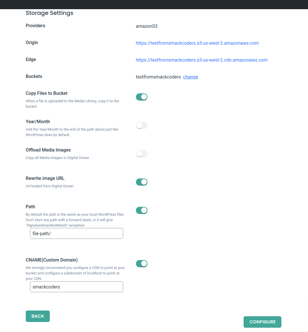 - Offload Media – Upload existing media library files to Amazon S3 or DigitalOcean Spaces.
