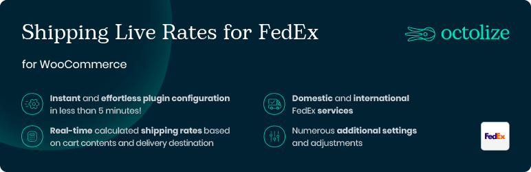 Use this free FedEx plugin for WooCommerce to offer FedEx shipping options to your customers. Save time and integrate it with your shop in less than 5 minutes!