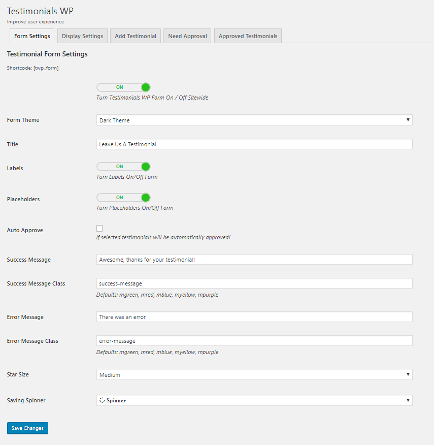 - Auto approve testimonials