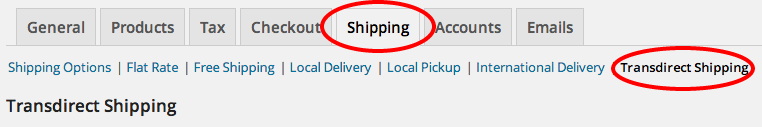 • How to navigate to Transdirect Shipping option under Shipping settings.