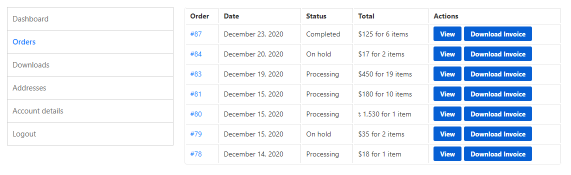 This Invoice & Packing Slip plugin includes download options in different scenarios. After placing a new order, you will get an option to download the invoice in the My Account > Order section. Also, you can download the attached invoice from the order confirmation email.