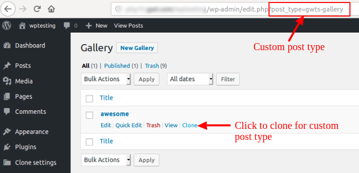 • Clone a single post for the custom post type.