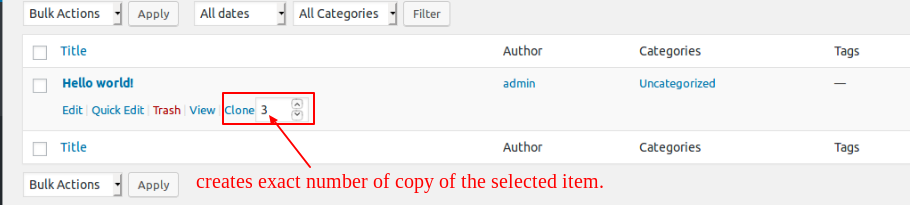 • Bulk Clone multiple selected posts, pages and custom post types posts.