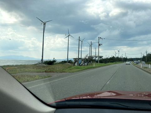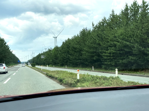 日本国内の最大級の新エネルギー供給基地を目指していることもあり、ここ八郎潟周辺は、新しく整備された県道42号男鹿八竜線の道路沿いに風力発電タワーがいくつも整備されています。