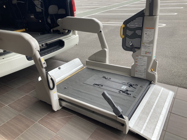 車といっても、介護用の車なので大きいです。ハイエースよりも大きい感じ。福祉車両っていうみたいです。