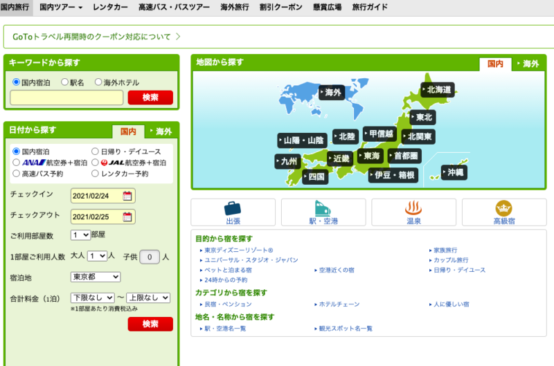 ポイント利用で実質0円旅を実現するなら、楽天トラベルの次に可能性があるでしょう。
