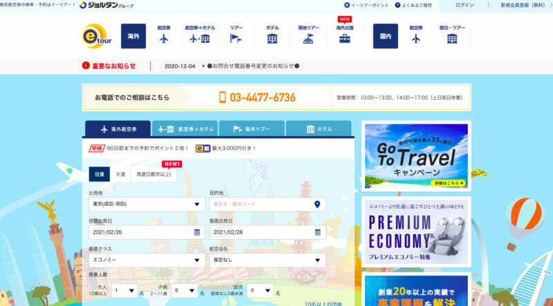 イーツアーは、ビジネスクラスの格安航空券を多数取り扱っていることが特徴の比較予約サイトです!