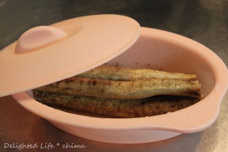 1.ゴボウは皮を削ぎ、スチーマーに入る長さに切りアク抜きする。