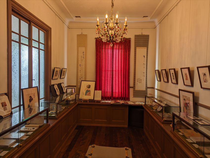 今は、竹下夢久の作品がたくさん展示されてました。しかし夢久の作品はこうした古い建物に合いますね。伊香保温泉に記念館があったりはしますが、ココ以外でも古い建物ではたびたび夢二の作品が展示されているのをよく目にする気がします。