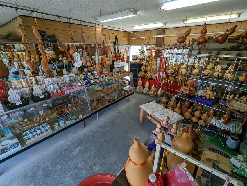 一人で切り盛りしているようで、瓢箪博物館の方から聞いてここにきた旨を伝えると、とても喜んでくれて商品やお店の歴史をたくさん話してくれました(*´▽`*)