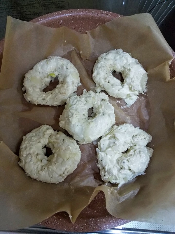 玉ねぎ多いので、果たしてベーグルになるのか💧