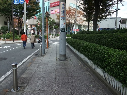 その歩道のど真ん中に、こんな電柱が建っています。
