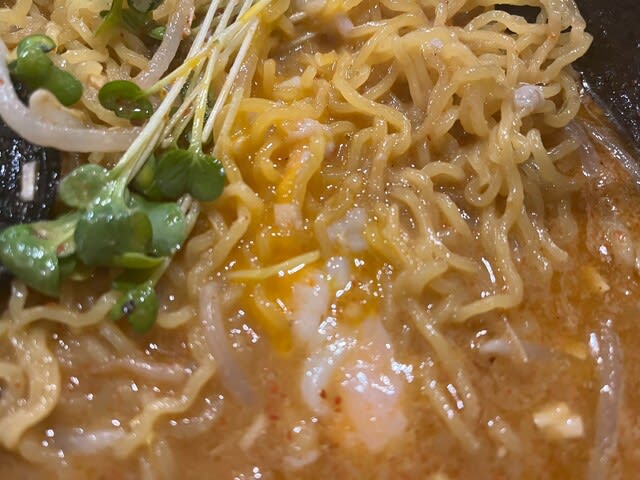 トッピングはミンチ、もやし、カイワレ、ネギに追加で温玉。